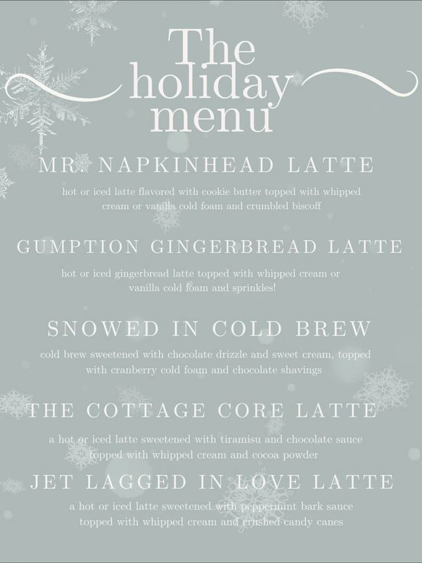 We turned The Holiday (the cozy rom-com with Cameron Diaz, Kate Winslet, Jude Law, and Jack Black) into a dreamy coffee shop menu — full of warm vibes, romantic names, and just a touch of snowflake magic. Come try “the holiday” menu! We can’t wait to see you ❄️